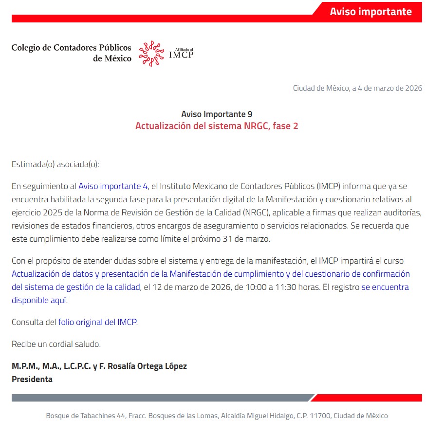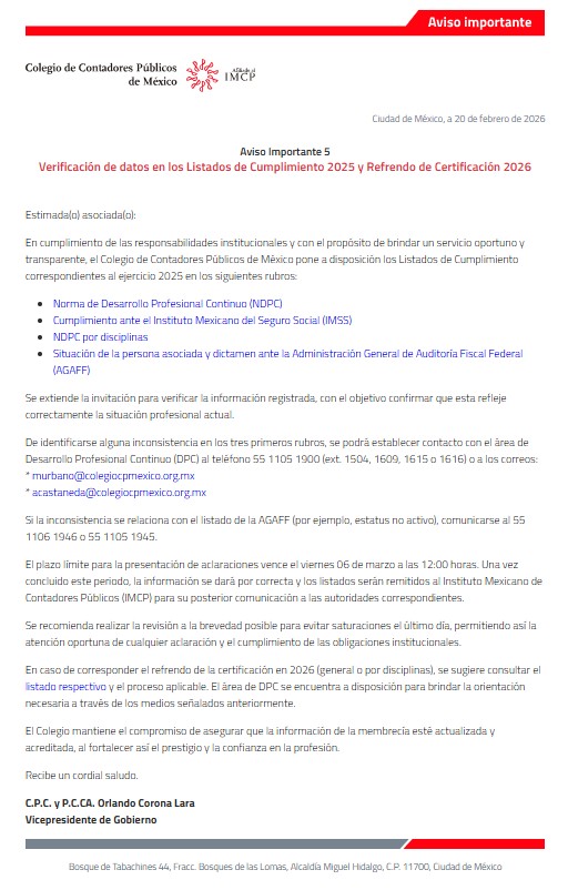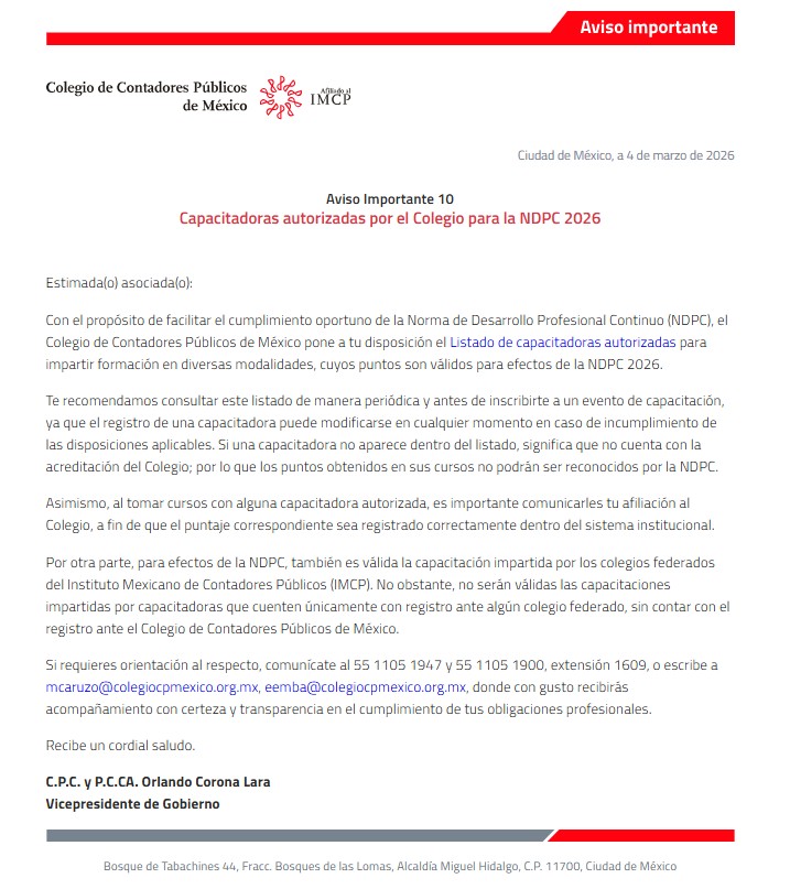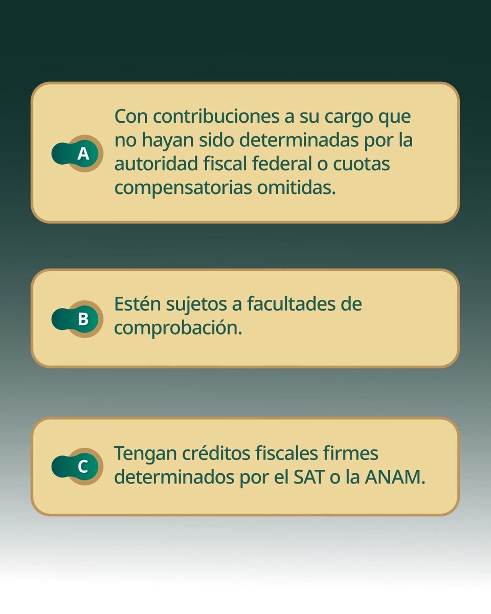 - Haber presentado la Declaración Informativa de Operaciones con Terceros (DIOT) del periodo.