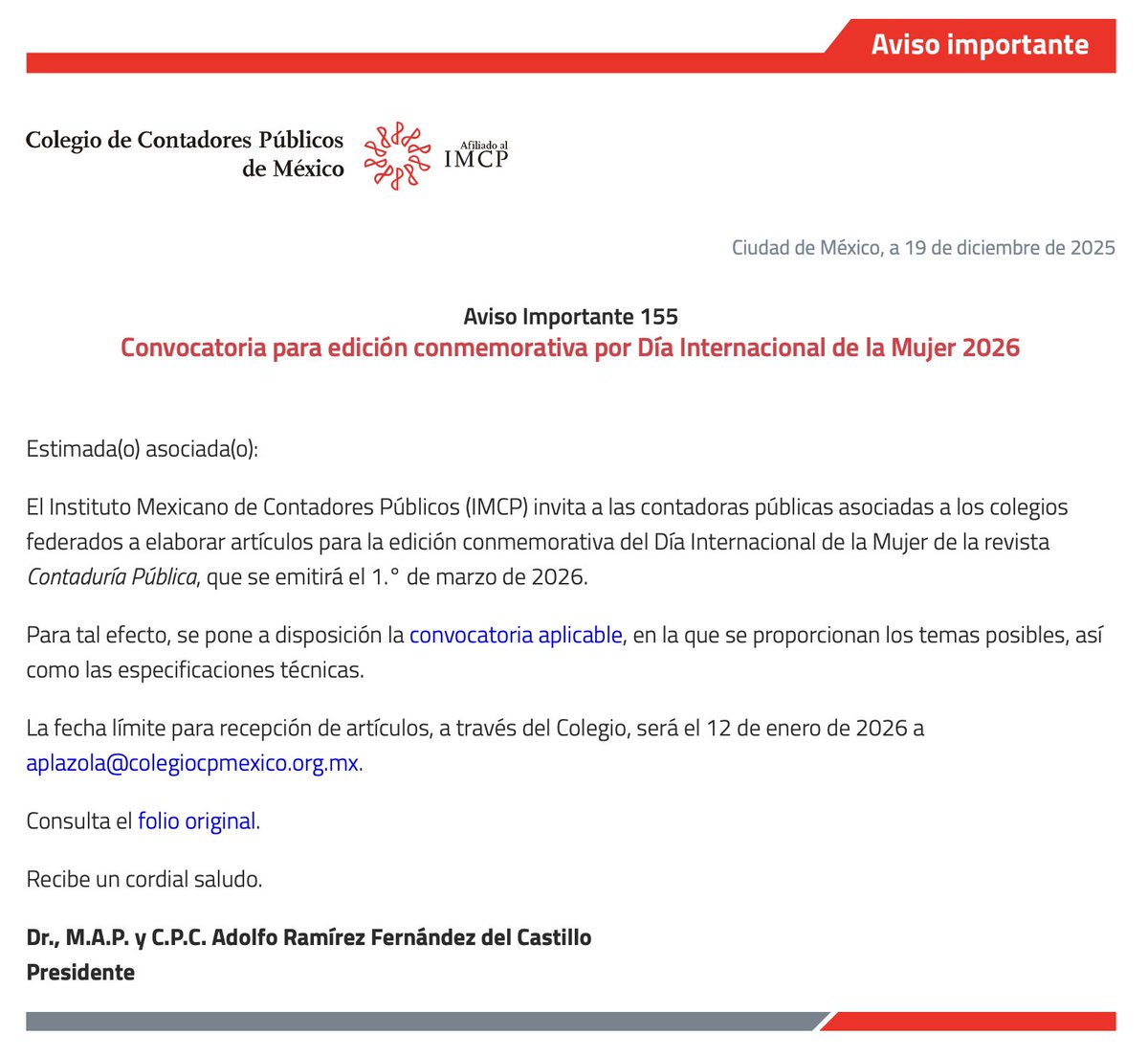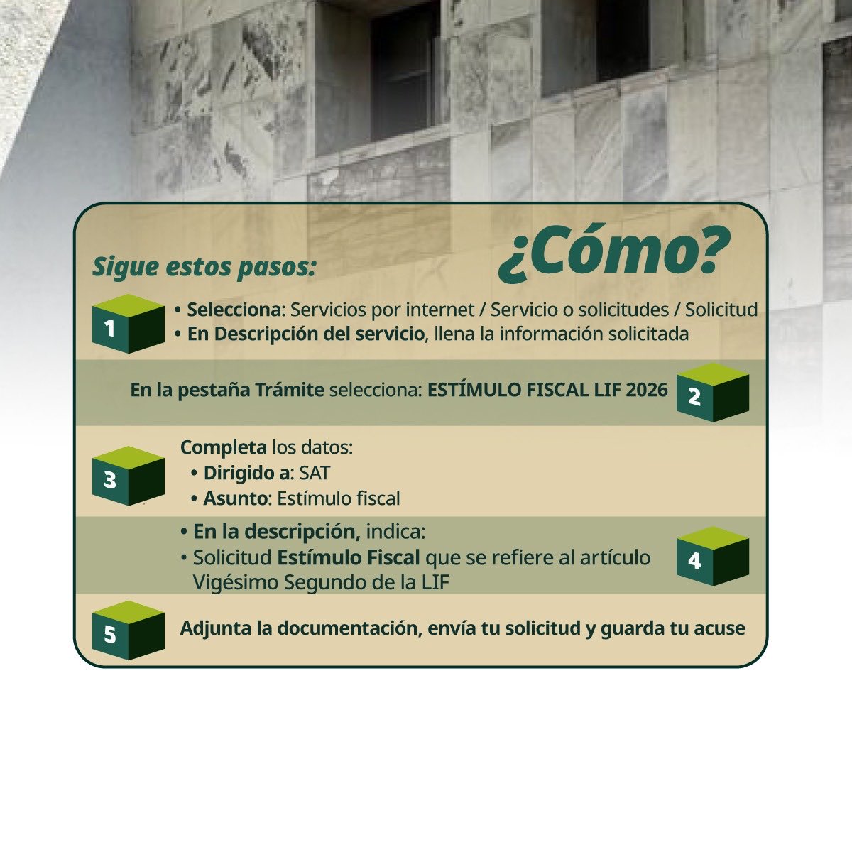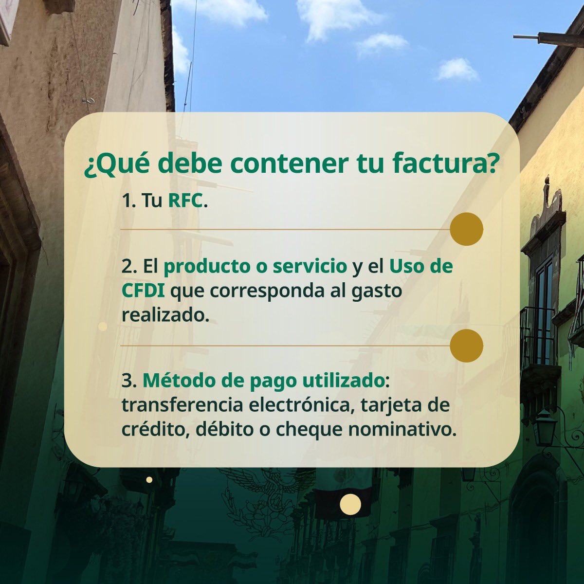 - Haber presentado la Declaración Informativa de Operaciones con Terceros (DIOT) del periodo.